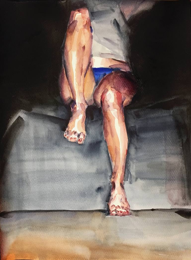 Watercolor on fabriano, sitting on the couch, doing nothing
