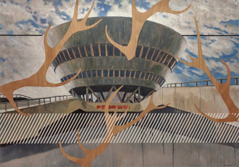 I painted this picture on the occasion of an event related to vintage and prestige cars and more specifically to the Porsche model. So, I wanted to pay tribute to this brand with its unique and prestigious design by using the incredible architecture of its headquarters in Leipzig, Germany. The deer ...
