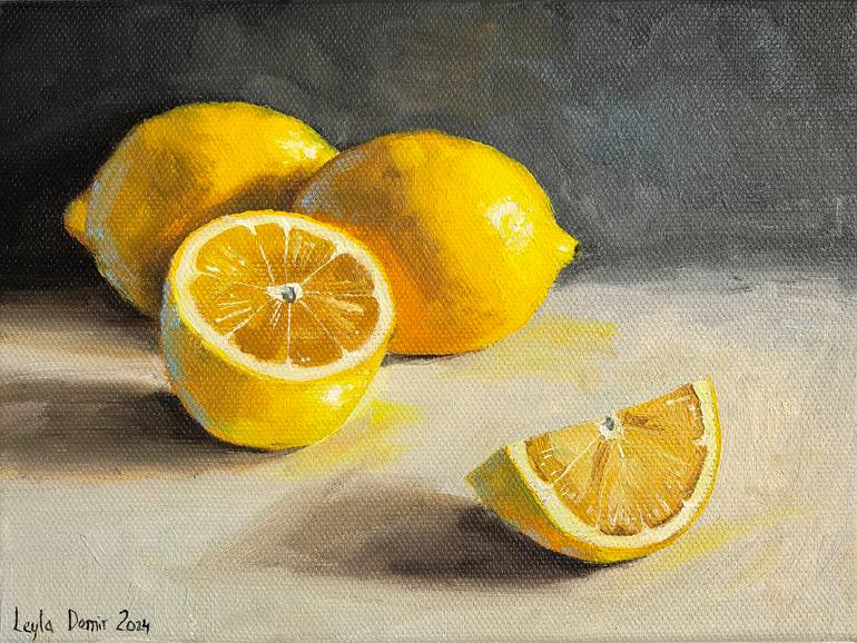 Lemons on table with white tablecloth fluit still life, original canvas oil painting, the lemon picture light and fresh. Is a perfect decoration for your home! Ideal for a bright interior, such as a bedroom or living room. The size is 7x9 inch. A nice gift for yourself and your loved ones! Painting ...