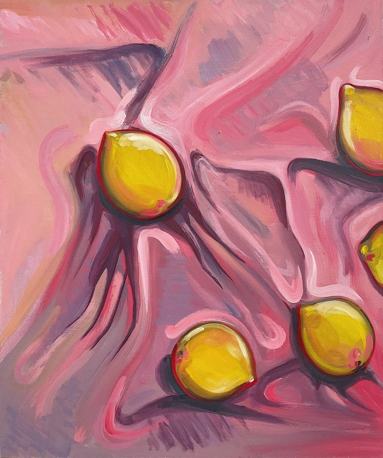 ‘Lemons (still-life),’ is part of a series of still-life paintings, depicting summer scenes of eating, drinking, culture and colour.