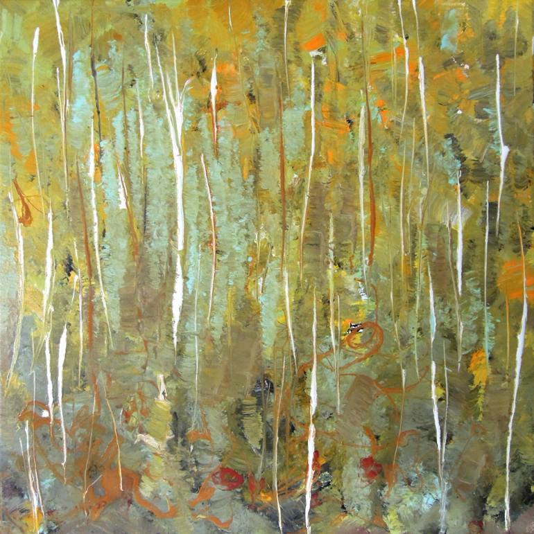 I was visiting the Cloudland Canyon State Park, its gorgeous trees covered the rock amazed me. Came back to my studio a day after I did several paintings from the impression I kept in me. I used the wet acrylic to create the nature flow and layer up trees. It is all about nature, nothing from me.
