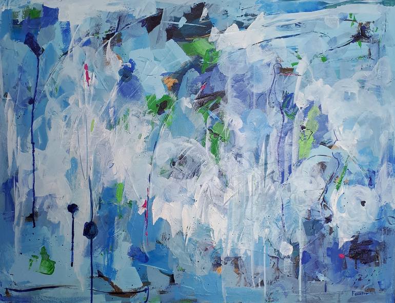 This painting is featured in The Other Art Fair's 'Color Your Home - Pure Blue' Curated Collection (October 2020) 'Let's Go Here Instead' is inspired by the works of Joan Mitchell and the events of early 2020. This painting is ready to hang with wire attached. The sides are painted black.