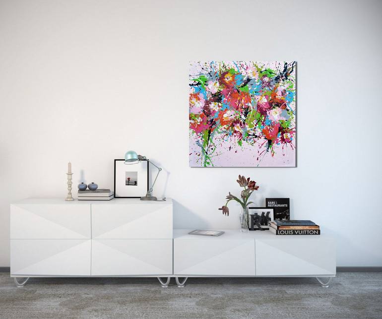 It's an abstract work, made with acrylics on canvas. It's signed on the front, varnished and delivered with its dock system. The edges are painted to prolong the work. This allows it to be hung without framing. Isabelle works the pictorial materials in a spontaneous, dynamic and instinctive gestu...