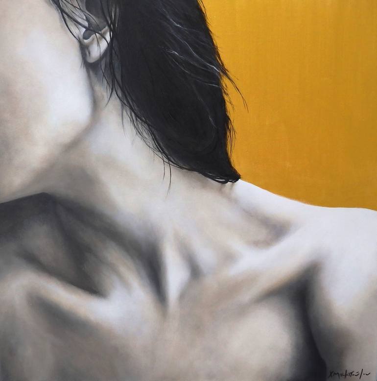 A woman’s neck, lust, sweat, a need to be kissed, touched, licked. Gold background and a pale skin on the frond, black hair, a figure of a young body full of lust. “Lick” is part of the “Female project” which started in 2019, a series of paintings aiming to express the contemporary women loneliness,...