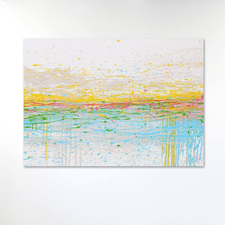 It is an abstract work, made with acrylics on canvas. It is signed on the front, varnished and delivered with its hanging system. The edges are painted to extend the work. This allows it to be hung without a frame. Isabelle works the pictorial materials in a spontaneous, dynamic and instinctive ges...