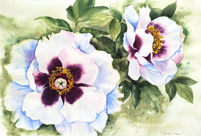Original watercolor painting on cotton paper "Light blue peonies" / wall art from series FLOWERS. I am inspired to create by the beauty that I see around me. I love looking at flowers, thinking about the colors that I want to use in my work. I try to convey in my paintings exactly how you can see ...