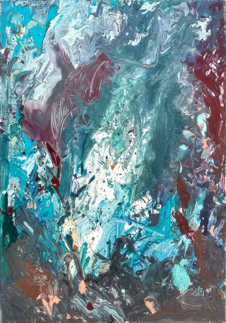 Mediya Al Matroshy is an Emirati contemporary artist born in London and she paints music. As a person with synesthesia, a condition characterised by the blending of multiple senses, Mediya hears the sound of colors and sees the notes of music. In her abstract works, music is not merely a muse, rather Mediya evokes rhythms & notes on the canvas, making her connection to music a deeply central & spiritual part of her work. The melody of the songs that Mediya listens to is translated into colors, shapes, and textures, and the energy that music evokes becomes brushstrokes on the canvas. “It is that connection that I seek with something much bigger than me which I’m striving to connect to primarily,” she writes, adding that, “the song is the mediator & the painting becomes the intuitive expression of that which I see and feel. Each art piece is a song, and that is how they are titled,” Mediya explains.