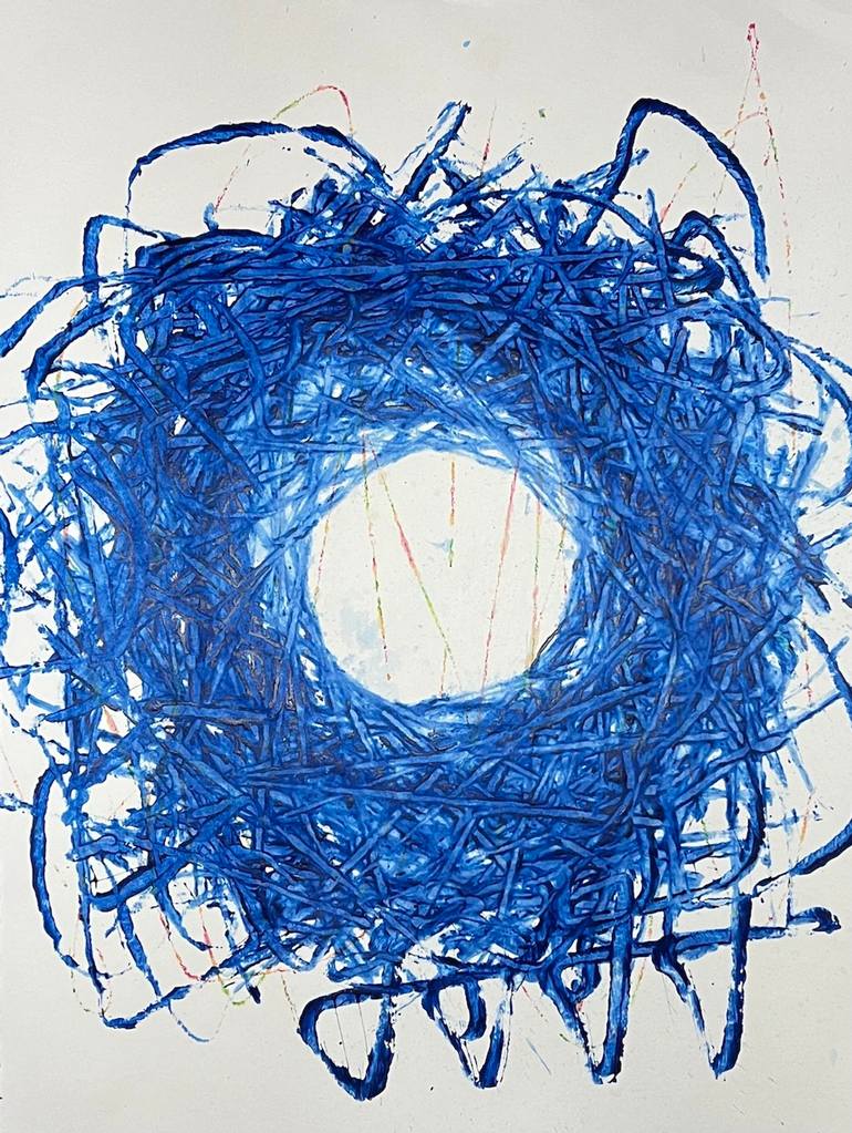 Jean Cherouny's "physicality" with paint grew out of her competitive skiing and mountain biking careers. She sees painting as a way of believing in the boldly direct, elasticity of paint. As an abstract artist, Jean believes in the body's ability to paint as a way of reflecting the techniques and extremes of her time. "I am in a wild game of emotion and energy that finds its paths and forms under my feet. Jean uses her rollerblades to create large and small wheel inspired paintings on canvas and paper. “The body reflects my greatest knowledge and spirit. It's the one thing I trust most to get me to where I am going with my art”, Jean says.