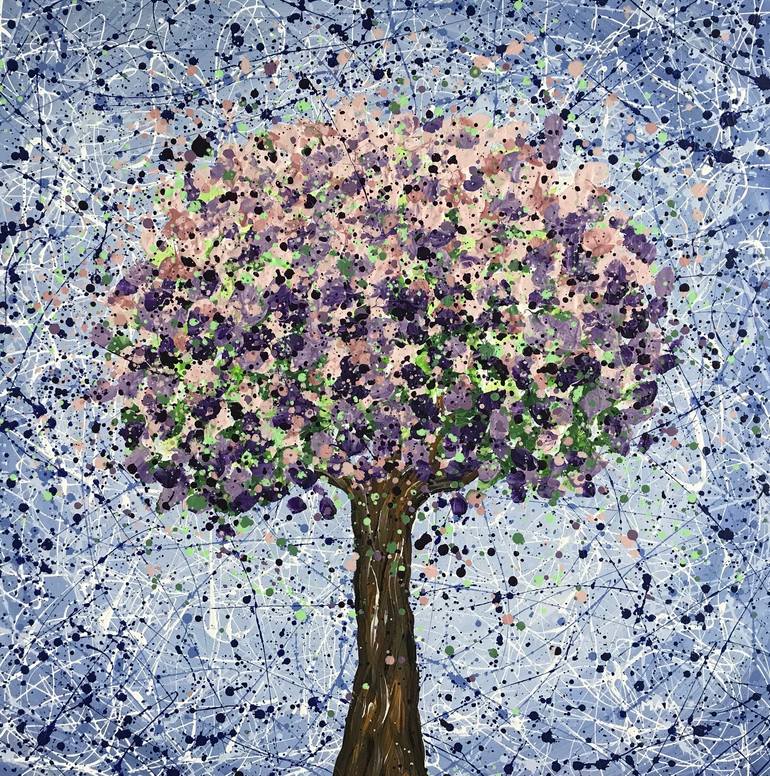 Lilac Tree N.4 - happy vibrat acrylic painting on a quality canvas. Streched and ready to hang. Original and hand signed.
