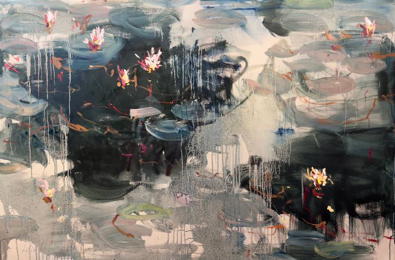 Large semi-abstract expressive and gestural painting. The painting is a part of my series "Reflections and Flow. Dreams of summer in Giverny." Inspired by Monet and gardens in Giverny and the relationship between Impressionism and abstract expressionism. Oil on canvas. 100x150cm Unframed. In situ ...