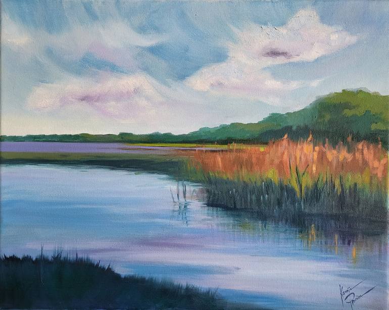 A peaceful lakeside view, where the stillness of the water reflects the vast sky and the warmth of golden reeds. Inspired by Limbaži Lake in Latvia, this artwork captures the beauty of untouched nature and the serenity of quiet moments by the water. The soft color transitions in the sky and delicat...