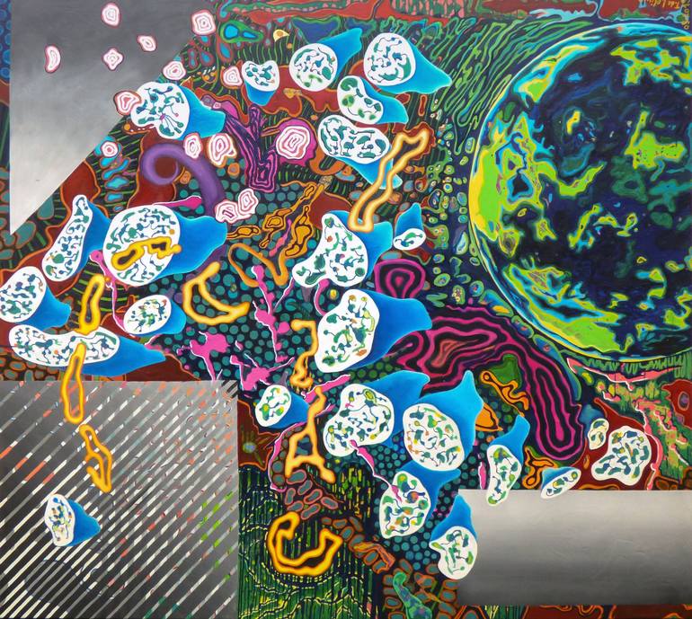 The contrast of order and chaos of colorfulness and black and white of geometry and amorphism. The overload of our senses in digital times through information, advertising and consumption is the starting point of this series. My painting reflects the no longer identifiable input traces and gives the...