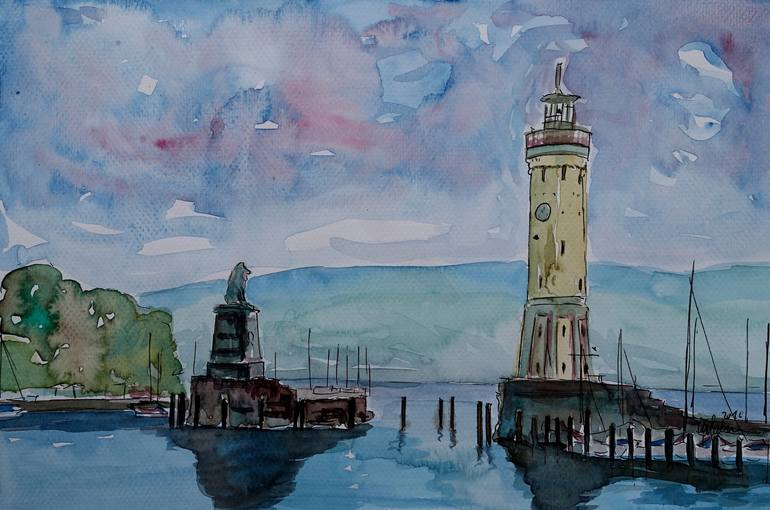 Lindau Lake Constance Harbour Entrance with Lighthouse and Lion - We were there this late summer and were immediately inspired by this romantic small town. Old town, old houses, island, lake, mountains - everything was there.