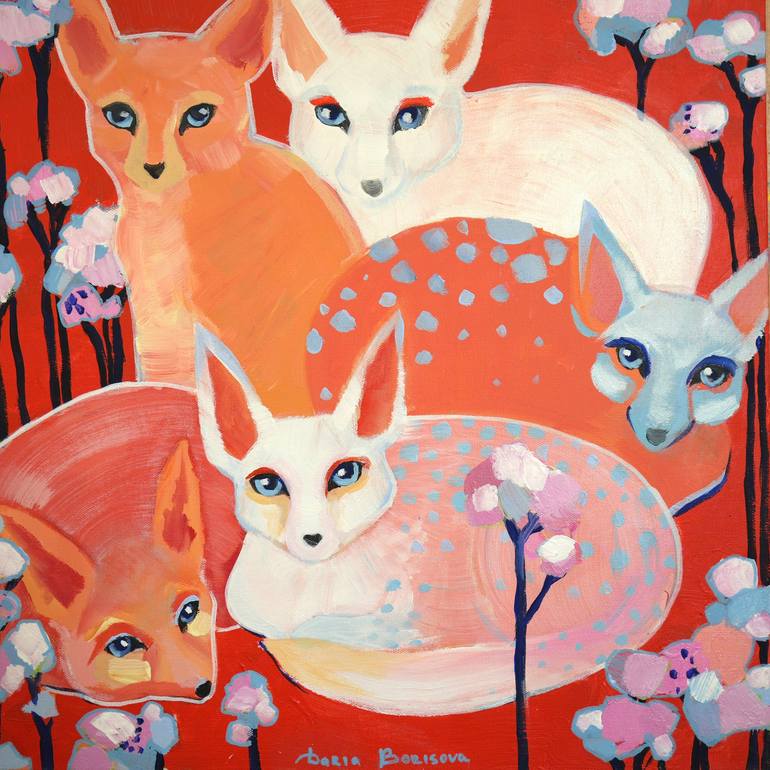 “Lingonberry” Acrylic on canvas 20 x 20in The artwork is sold unframed The sides are colored the same pattern as the painting. I depict the natural world, in which plants and animals form a pictorial image of a single organism. It reminds me of an ark (maybe Noah's ark) as a phenomenon of a commu...
