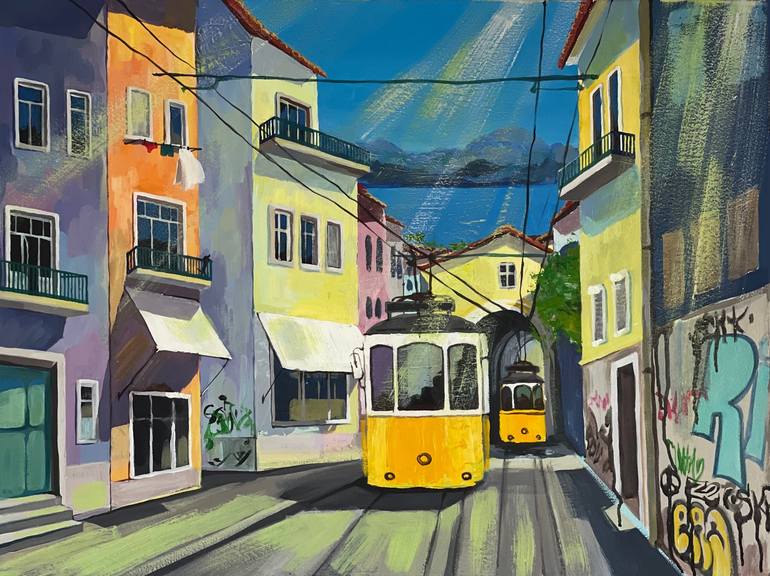 Summer time in Hot city. The streets of colorfull Lisbon are always in my heart. The alluring beauty of abandoned houses, graffiti, famous yellow trams - all this creates a special free spirit of the city Acrylic, canvas. This artwork is sold unframed. Canvas will be sent on a wooden stretcher, the...