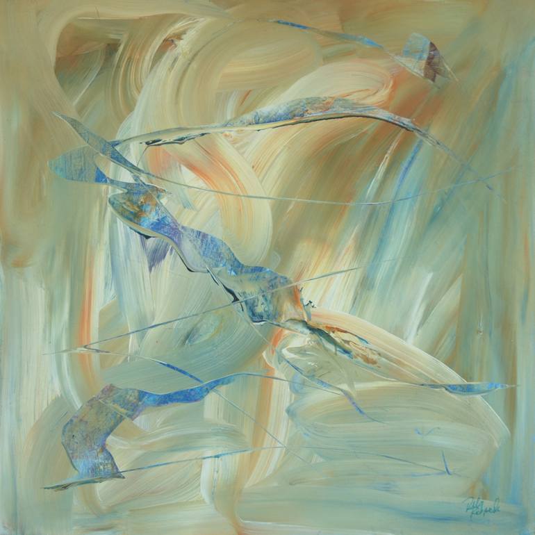 This painting marked a shift in my approach to my work two years ago. It was the first instance in which I was fully able to immerse myself in what later became the state of mind described in the mantra I often use now when I begin a piece – “Be present. Let go. Disappear.” The shift began in a stud...