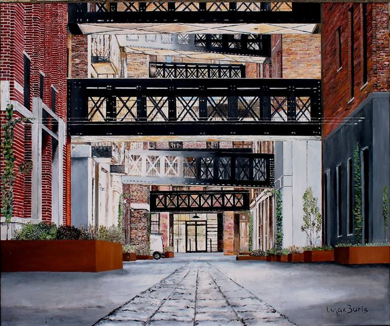 « It's how to catch the rhythm of daily surroundings. » Max Baris is a Netherlands painter focused on urban landscapes and industrial objects. His work explores how urban structures present differently between various cities. Painting in oil on canvas, his works suggest or show the presence of people, though inactivity and emptiness reign. Max Baris takes you to distant destinations, inviting you to fantasize and look behind the paint.