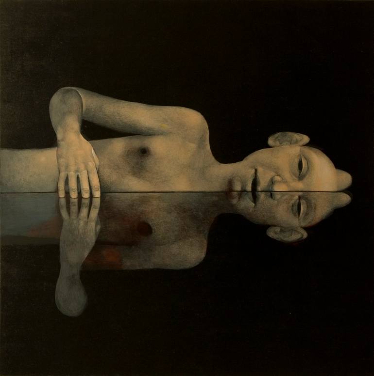 My paintings are kind of notes of special moments in which I was able to be sufficiently open to a deeper understanding of myself and the people close to me, our actions and feelings. It's an attempt of an inner man portraiture. Therefore, it seems to me, occurred a need for simplified figuration, deformation, omitting parts of the face and body, as opposed to how we humans are accustomed to perceive each other in our physical environment. Is it actually possible to express abstractness of emotions and ideas about man by painting the human figure? In what way and how much these ideas are, concerning growing up in the community, education and cultural heritage, visually formed in our minds? As god is depicted in human form, because that is what our minds can comprehend and feel familiar to, I spontaneously choose to describe the spirit as something equally human too, but also strive to get out of these boxes. The picture that balances on the imaginary boundary of physical and spiritual, for me, is a form of connection and communication with other people.