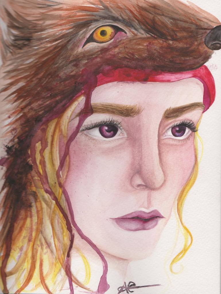 Water colour and acrylic painting of my version of Little Red Riding Hood.