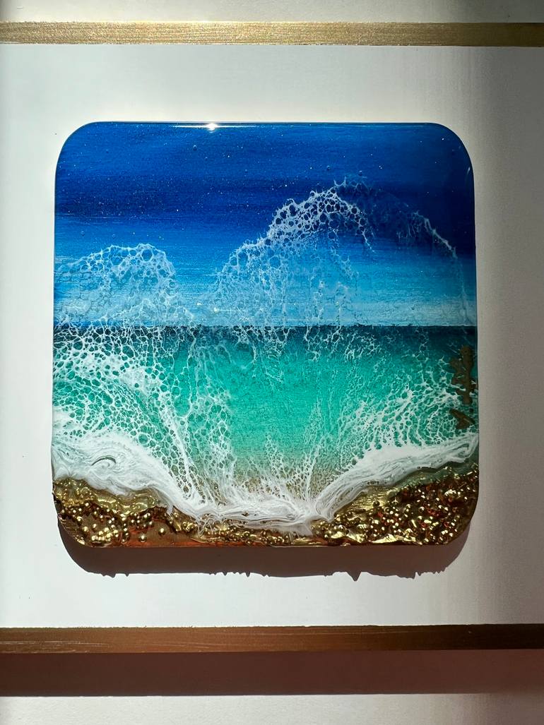 "Little wave" is part of the "Ocean Waves" collection inspired by the colors ocean has in the Bahamas. Calm splashing waves, warm and teal turquoise ocean, clear blue sky. Peace and serenity.Original painting of splashing ocean waves in different shades of blue • Ready to hang, Mixed Media ocean pai...