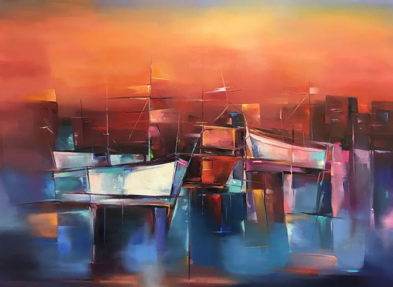 In this series of my paintings ,I inspired by Braque . I started This style recently and I could sell all of them in Canada. Living in the city by the sea like Vancouver Has lots of inspired me to paint the Ocean,Ships and boats.I usually Use acrylic for the first layer and then finished with touche...