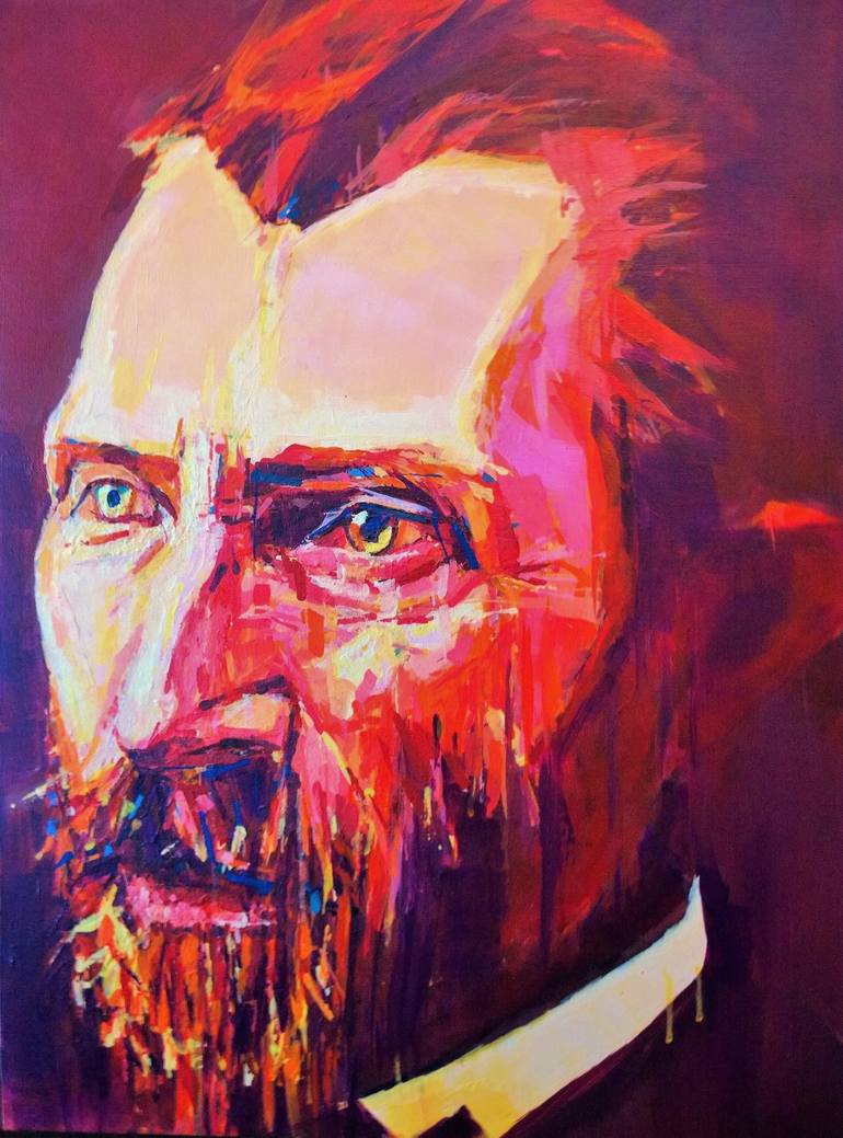 "Stephen Collins pays homage to the giants of Modernist portraiture with his own portraits. Working from well known photographs, he injects a new, colourful light into the images and in this sense the subjects are freshly illuminated by his reverent gaze. The great artists in turn gaze outward, and in each case Collins has chosen to paint eyes as jewels. With this emphasis, the eye of the artist becomes a piercing lens, because it is this acuteness of vision that gave them prominence in the first place" __________________________________________ Sarah Ryan Director - New Blood Art Ltd