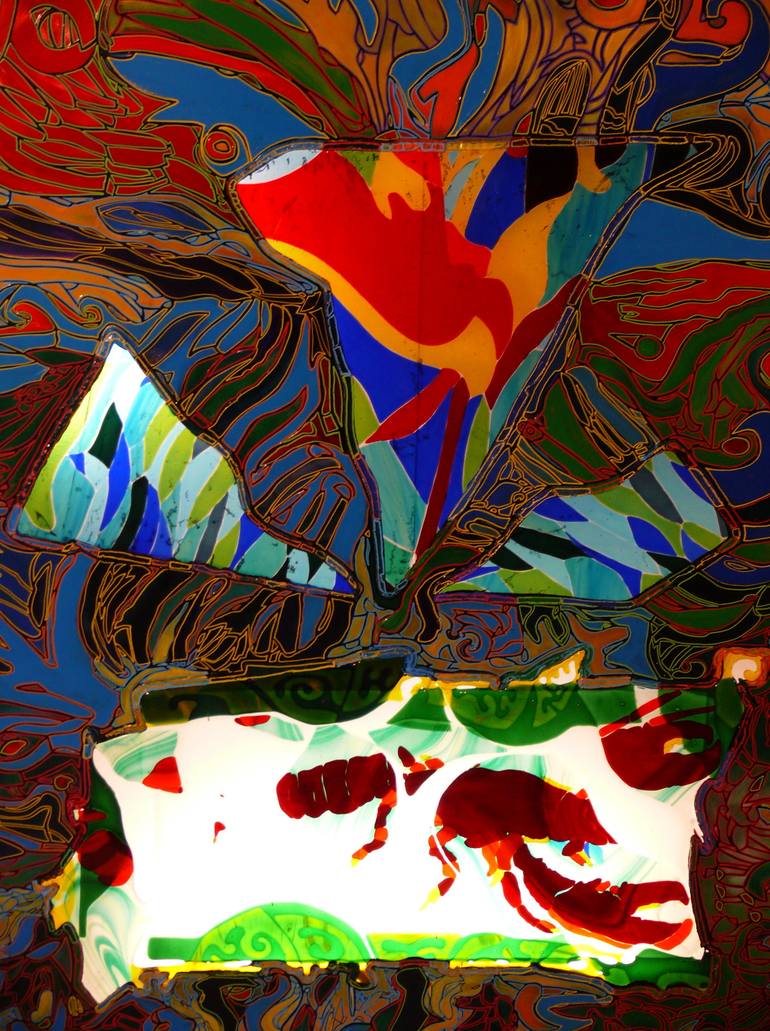 Everything I do can be called a lifelong process of evolvement like everything at nature once evolved within a "natural order". My studies as well as my time as a teacher, but first of all my travels, have formed me. Like everyone I was created by the daily influences: my children, my friends, and all the surrounding social and personal problems. From this daily life originates my creative sense for responsibility: I feel responsible for our planet's imperfect looking future! I sensed our Planet first of all visual, and connected my impressions with my strong interest for biology and my everlasting wish to travel. The urge to discover and the urge to create met at my soul. I traveled through many countries but how many did I not visit? I learned about the elemental, wild power of our oceans, the cradle of life itself. Then I became aware of the destruction by man. I saw the dead corals, the final extinction of uncounted creatures. At the small islands of the Pacific Ocean I became witness to the destruction of everything that should have been holy to us. These wonderful old and life giving reefs that we destroyed inspired me to formulate my feelings in order to oppose the destruction. I traveled further: New Zealand, Australia, and America with its unique New York. I traveled through the old Europe that is connected with my soul and through the hot Africa with its hard but nevertheless human way of life. Indonesia with her unlimited sources of artists and wonders of nature helped me to understand our world, as did the drop of river water under my microscope - or the body of the ant, the blade of grass?all these systems and impressions go through the filter of my brain and everything flows further into my heart and my hands: the forms, the colors, and the connections. Is the blade of grass with its efficiency not superior to any machine? And what kind of wonder is the human being? 23000 breaths does he take each day, and he needs so many liters of pure water - pure water from his small habitat within our universe. You should think that this habitat would be perfect for him. We are all tiny parts within the great, unbelievable and after all not understandable system. Every detail within this system is important, both in the physic as well as in the psychic world. Errors of the system (like my diseases) let me reflect about the connections within the system. Everything is connected - nothing is meaningless.