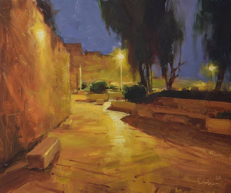 Boris Cohen. The artist who paint moments of life. The moment is the here and now that possesses our lives. It’s where the colors of life reside. It’s where the shades of life, fateful meetings, and passions collide. We tend to think that the moment is impossible to catch. But the next time you are walking through the streets of Israel cities, don’t miss your chance to meet an artist, who can help you capture this moment. The artist who paint moments of life. Boris Kogan is an artist coming from Russia and currently living and working in Akko, Israel. He started with water colors but as all other impressionists of the past he didn’t hesitate to transition to oil painting. Indeed, oil paints can capture the charm of this moment with exquisite gentleness and expression. The early works of Boris are multi-layered with meticulous attention to detail, and the inspiration for them was mostly untouched nature. Gradually, as his own style developed, Boris began to reduce the number of layers on the canvas, preferring the quicker work of the technique “Alla prima”. This technique allowed Boris to get closer to his main goal: capturing the moment. However, as Boris developed, the content of this moment gradually changed, slowly shifting to a more urban perspective. From woodlands to urban jungle, from the silent scenery to the crowded streets. Boris often admits that the urban landscape is his favorite motif. Painting among people, allowing them to not only be spectators but even in a way participants in the process, — this is what gives him the most pleasure. In the flow of traffic, the chaos of lights, and variety of sounds surely beats the rhythm of city life, which Boris displays for any weather or season. Whether windy, wet or sunny day, he can be seen on the streets of old Akko or Jerusalem, transferring to canvas his impression of the events with bold strokes. Not only does he not mind the attention of by passers, but even finds it fun. Being in the center of the situation is a lot more exciting than being away from it. Boris laughing, says that even the darkest night will not stop him, and if he thought of something to paint in the dark, he heads out with a flashlight. The vast majority of the work is done in the open air, where Boris manages to capture the essence of the moment and its atmosphere.