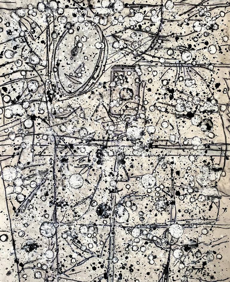 "In a time when there is enough well-executed but wholly unfelt abstraction around to constitute a new salon, which indeed it has effectively done, Todd Monaghan’s work is as refreshing as a shower on parched ground. It is work I first encountered about ten years ago when Monaghan’s mature style was already well developed. I paid studio visits and recorded an interview for a study on how a necessary spirit of truculent inventiveness could survive in the art world in a fat period, a time when relative prosperity was posing its own problems, when the War of the Isms was dodo-dead and no demanding new imperative has sprung up to replace it. Monaghan’s working methods impressed me at once, namely his restlessness, his visible willingness to embrace chance, a recklessness which struck me as very like the modus operandi that the first generation of Ab Exes had taken from Surrealist Automatism. I liked the way he would work on the wall, then transfer the surface to the floor, then hoick the piece back onto the wall again, dripping, gougimg, pouring, incising, splashing, seemingly recklessly and, yes, perhaps actually so, but ending up with an image that seemed so controlled that he might as well have been a watchmaker meticulously assembling a timepiece. A hang of eleven of Monaghan's canvases in the SLS Hotel was one of the projects at Art Basel Miami this year. Each was distinctively different but unmistakeably his. His unorthodox ways of making his work are taking painting in new directions." ~ Anthony Haden Guest, art writer and friend Todd Monaghan is an American artist, based in New York City, who explores spontaneous intuition and the subconscious mind by flicking, spilling, dripping, painting, and scraping paint into layered, textural, immersive, multi-level paintings and collages. Monaghan’s paintings engage formally with line and density on a large scale and thematically stare into the widest scope of all – our boundless universe. His black paintings create other worlds, space realms with weird and strange planetary abstractions and stars. Stretching as large as 118 inches, his paintings relate to the individual and whole of the cosmos in their gripping, expressionistic approach.
