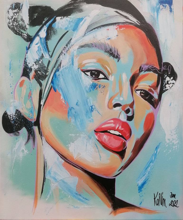 KaNim is a German painter with Turkish roots. Her art stands out for her female protagonists. Sometimes abstract, sometimes realistic - but always bold and colorful. She represents the conviction that colours are essential to moods. Her portraits represents fierce, strength,pride and freedom. She is addicted with flowers and adds them with naive representations to her portraits.