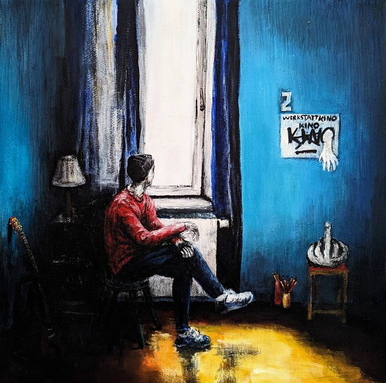 " Looking out of the window " Original artwork 2024. Size 30 x 30 cm.