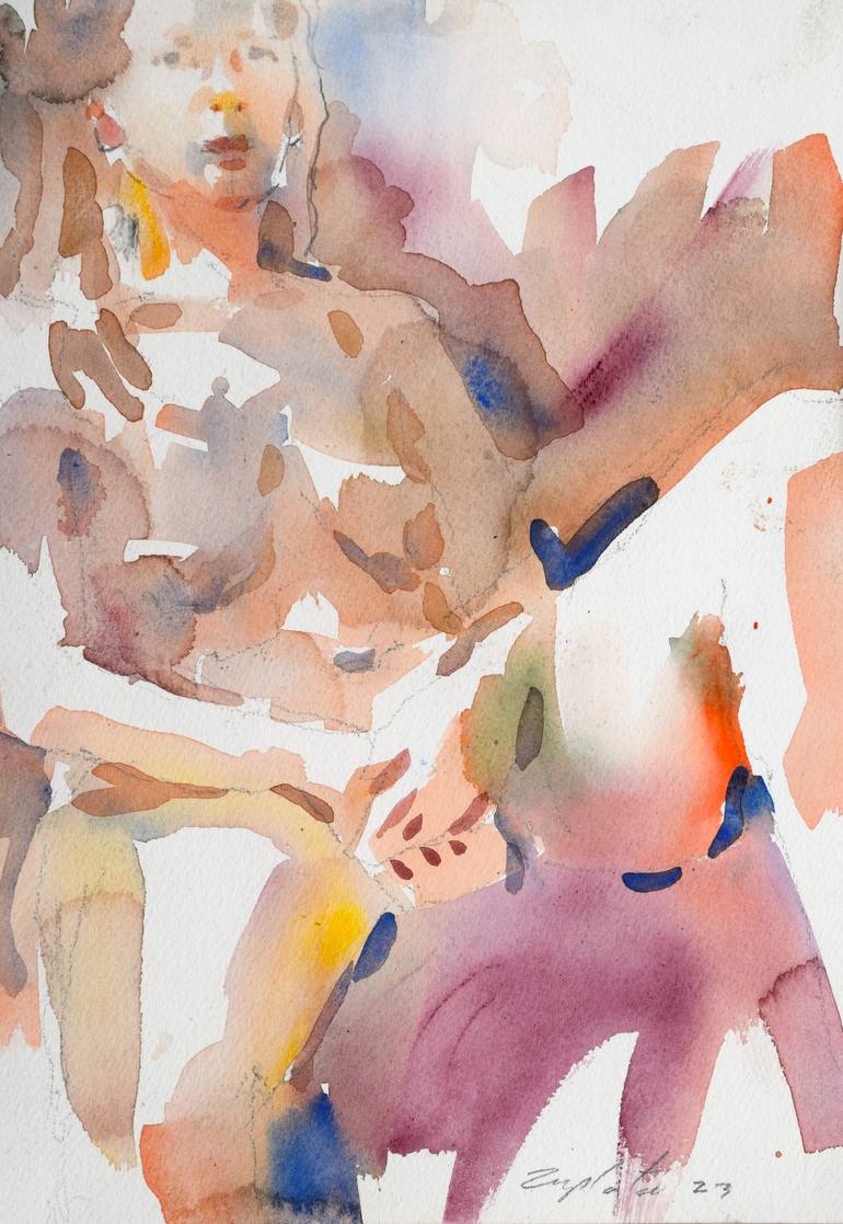 Water color on 140# Arches watercolor paper. Painted in a life drawing session