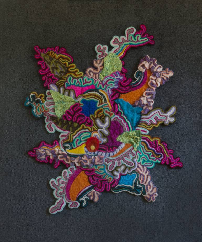 Sarah Carr is a fiber artist and designer based in Seattle. Born and raised in rural West Virginia, she lived in Pittsburgh, Boston, and Philadelphia before moving to the West Coast in 2020. While the forests of her childhood are very different from the towering conifers of the Pacific Northwest, the patterns and textures of nature continue to be a primary inspiration for her work. Sarah’s first tuition in fiber art, including soft sculpture, macrame, and corn husk dolls, came from her mother Susan, a public school art teacher. At Marshall University, Sarah learned felting, weaving, spinning, and dyeing techniques from Michael Cornfield, and earned a degree in Anthropology. She became fascinated by the properties and possibilities of wool, and after years of experimentation with wet and needle felting techniques arrived at her current process. Sarah’s work can be found in private collections and commercial installations on both coasts. In addition to her fine fiber art, she is the Artistic Director of the theater company WeftWorks, where she creates costumes, puppets, and fiber sculptures for performance, as well as choreographing and designing productions.