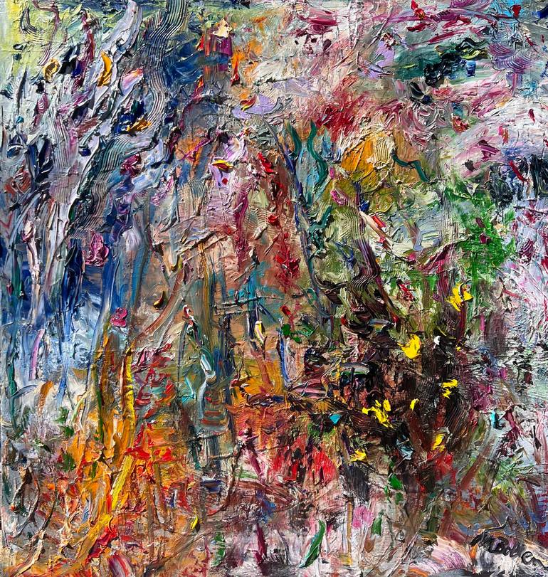 I wanted to do an abstract with thick paint that was expressionistic. DeKooning inspired me. I hope the viewer is reminded of being outdoors and in the moment, looking at beautiful flowers.
