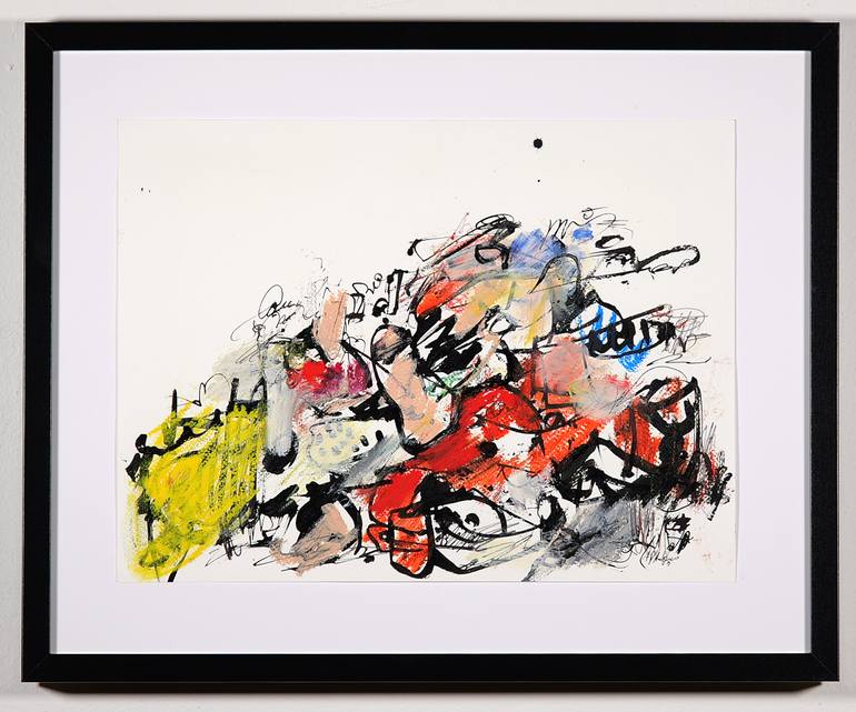 Inks, acrylics, pastels and markers on paper, signed on front and back. The painting is framed as shown in the photos. Alternatively, a wood or white frame can be requested, with or without a mount. If preferred, it can also be shipped without a frame. The final size including the frame is approxim...