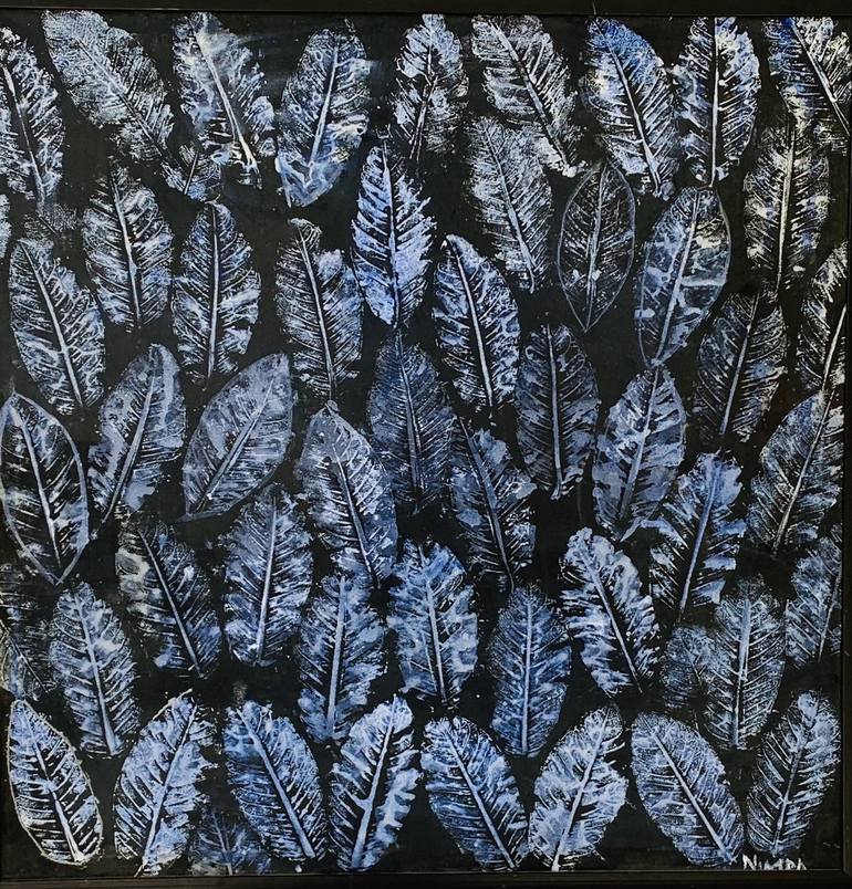 "Whisper of the Night" is a stunning piece featuring a cascade of vibrant blue feathers set against a stark black background. The artist meticulously used acrylics to highlight the delicate details and subtle variations of the feathers, ranging from rich cobalt to soft cerulean. The stark contrast c...