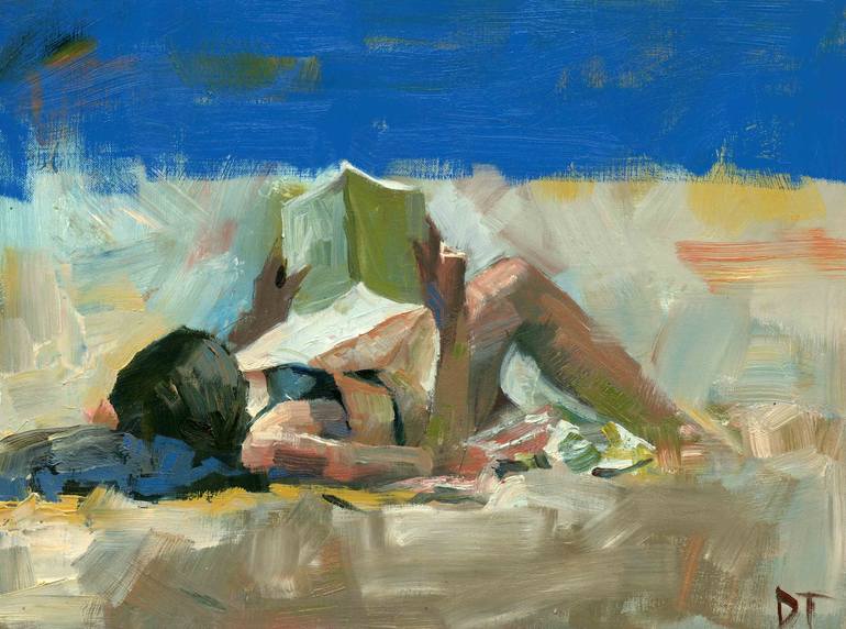 Lost in Sand and Surf is part of a series of depicting the female figure reading. I use subdued colors and loose brush strokes, as in most of my paintings, in order to create the mood and feel of an urban setting. Art buyers may see a symbolic reference to prominent 20th century American painters l...