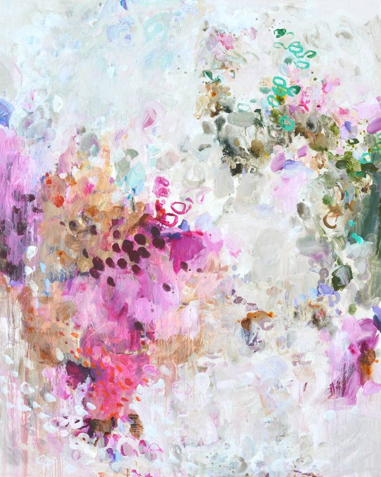 This is a colorful non-objective and intuitive mixed-media painting (acrylic, gouache, ink, charcoal, crayon, marker, flashe, polymer, crayon etc) on a 1.5" gallery wrapped canvas. The sides are painted grey, and comes ready to hang. Signed and dated on the back. Sealed with a protective matte/semi-...