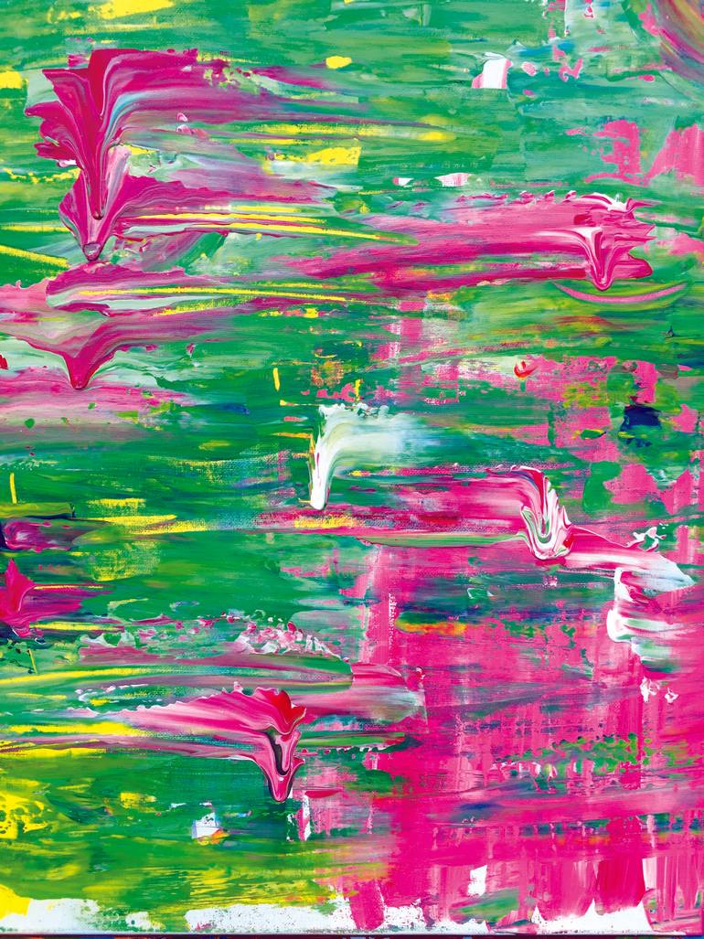 Love Rain This painting represents the human emotion of love. Painted with a palette knife so erratically like your heart when you are around your lover. Its pink and green hues being bright and fusing into one another also representing the pain that can come with love. It is an experience. You ar...