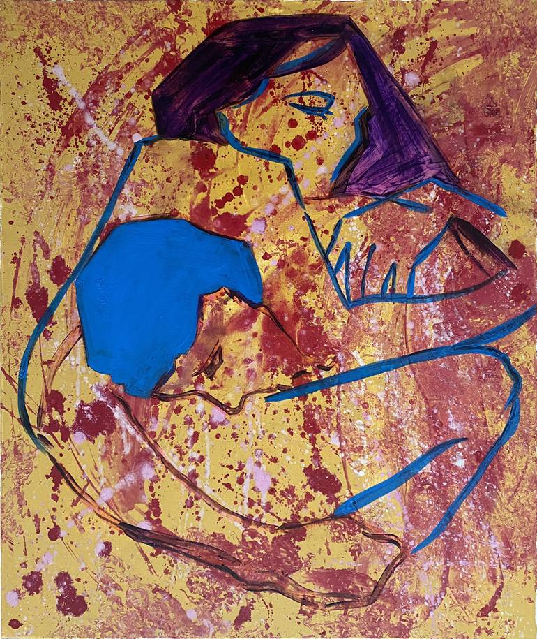 The picture is made in minimalist styles and is based on graphic techniques such as point, spot, line. Painting illuminates the reverent relationship between a man and a woman in the storm of external events. This is midnight art for your consideration.