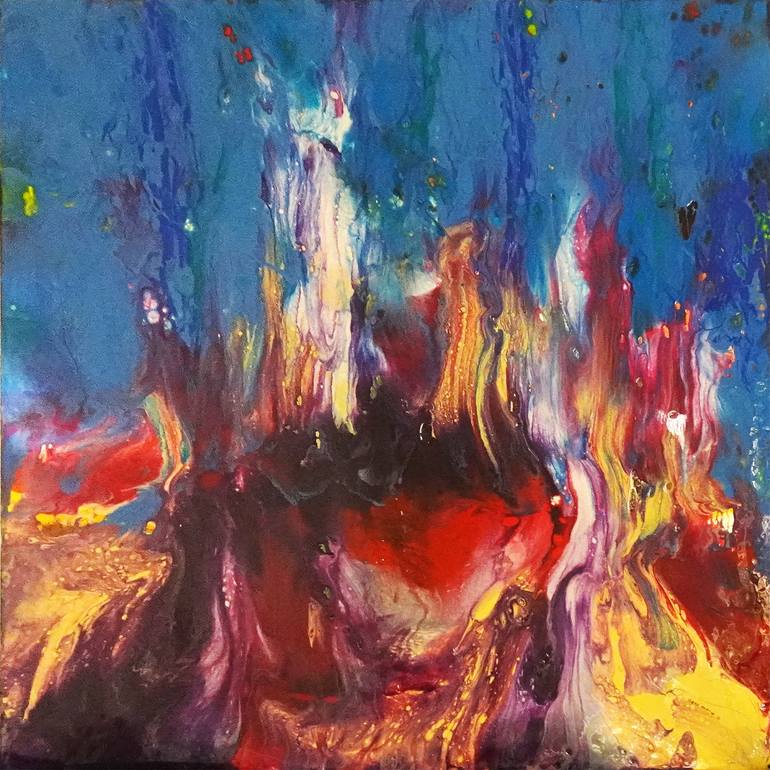My painting may be described in two words: colour and movement. My work reflects my vision of society and of our world, where nothing stands still, everything is continuously moving. I address this perpetual movement in a very personal and intimate way, through the fluidity of the colour stains that allows me to create characters, scenes and stories designed to engage the viewers emotionally. The mixture of colours resulting from the movement of the medium used gives spontaneity to this painting, where there’s no «safety net» but rather an ever echoing surprise. Although the object of my work may change, colour is always at its centre. I love colour for its powerful symbolism and I use it to convey emotion. Sometimes I start one work already knowing the goal I wish to attain, other times I follow the emotions that unfold along the process. With this very fluid technique there is no absolute control over the results, and I receive that final surprise gratefully. With my abstract painting I wish to create connections with the viewer, allow him or her to feel the pleasure and the joy of discovery in a sea of coloured spots, to be surprised by each line of contour, patch of colour or transparency, and in this way connecting emotionally with the work of art.