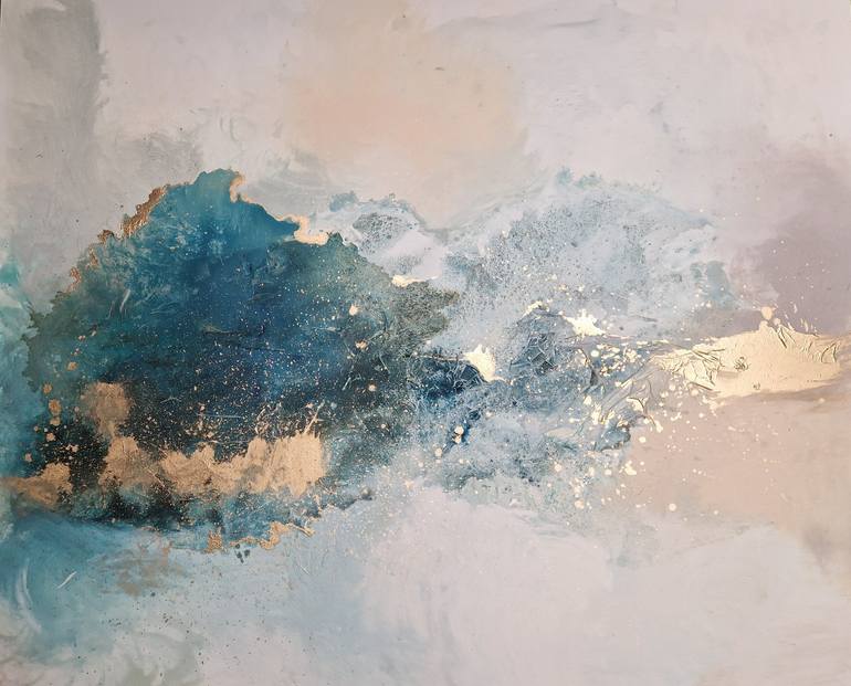 Magdalena Lenartowicz utilizes a full palette of colors inspired by the shades of nature. Her works feature azure blues, gentle pastels, sunny yellows, warm ochres, and sandy beiges – colors that evoke the elements of earth, water, and air. In addition to traditional painting materials such as richly applied acrylic paints, gold leaf shimmering among the folds of matter, and intentional cracks in the ground, Lenartowicz incorporates innovative solutions. She continually seeks creative exploration, experimenting with techniques beyond the typical artistic lexicon. Her attention is drawn to forgotten, seemingly uninteresting, and worn objects. A keen observer will notice roasted Arabica beans on her paintings, reminiscent of lively conversations in Warsaw cafes. The brown hue and coarse texture of coffee, combined with golden sandy tones, inspired her to create a new series titled "Earth's Energy." The calm and warmth emanating from her abstract, gradient canvases captivate the viewer, inviting contemplation.