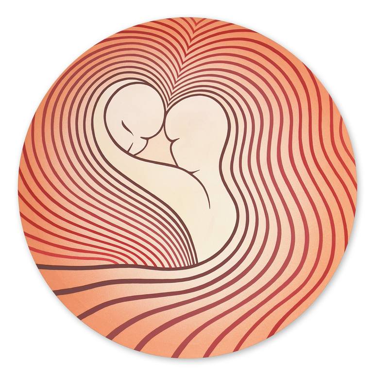 Two bodies are intertwined. The heads of a woman and a man touch, their arm hugs him, their hair wraps protectively around their loved one. Warm undulating, harmonious lines unite the couple. Body parts can hardly be made out, everything flows and melts together like the feeling of love. (german) Z...