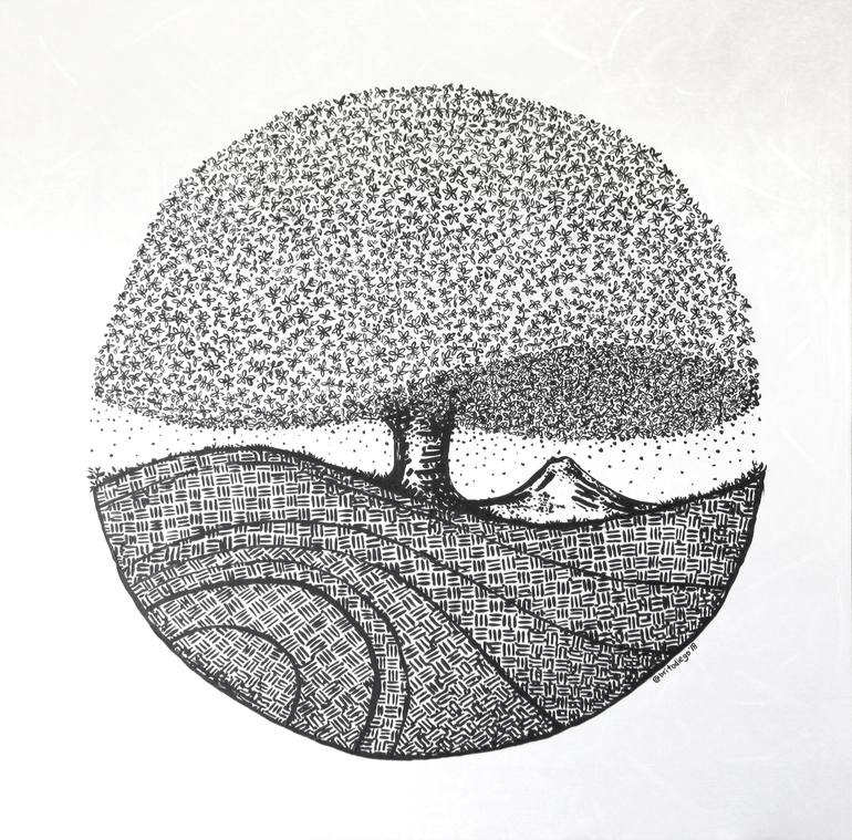 Inspired by an original "Amate" Tree back in El Salvador, this work symbolizes balance in life, the past represented by the heritage of the roots and bottom part, detached from the format and round. The upper part of the tree symbolizing the future and in the center, the tree representing the pres...