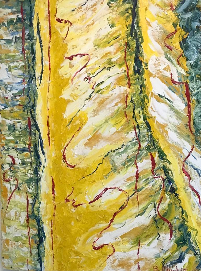 Barb Flunker, lives in St Louis MO, USA, with her husband and their dog, Doggy. As a self taught artist, Barb’s powerful abstract paintings, defined by color, movement and texture, draw inspiration from her home, nature and travel. Using her hands and non traditional materials, the artist intuitively spreads the thick, textural oils onto the canvas. The luscious artworks take minimally three months to dry. The artist is grateful to all who have supported her in her artistic journey. Barb’s work is included in the Rick Frimmel/ Gary Werth Collection, the Michael Staenberg Collection and others.