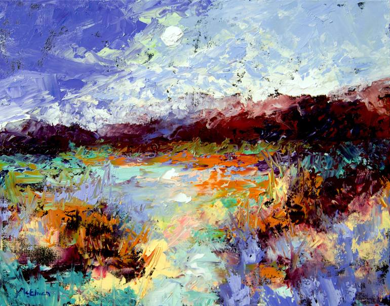 "Lowcountry November " by Claire McElveen Southern Abstract Artist Original OIL PAINTING 16" x20" x .75 " Deep edged Gallery Wrapped Canvas Sides Painted Black ORIGINAL OIL PAINTING ON GALLERY WRAPPED CANVAS I paint primarily with a palette knife and layer my colors and strokes for a luminous l...