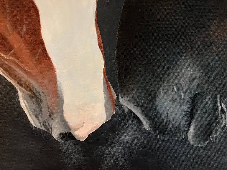This piece was inspired by my observation of two of our horses meeting each other for the first time. I watched them trot to meet in the middle, heads and tails high - and then lowered as they came closer, at last touching noses with a sigh of relief and soft sounds of 'hello'. Since this meeting, t...