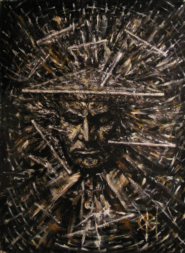 Ludwig. Portrait of Ludwig Van Beethoven. Inspired by the music of a Genius. Expressionism in music - Expressionism in painting. Unique method. This picture is painted with the help of the fingers, no brushes were used! St. Petersburg (Leningrad for that moment, 1989).