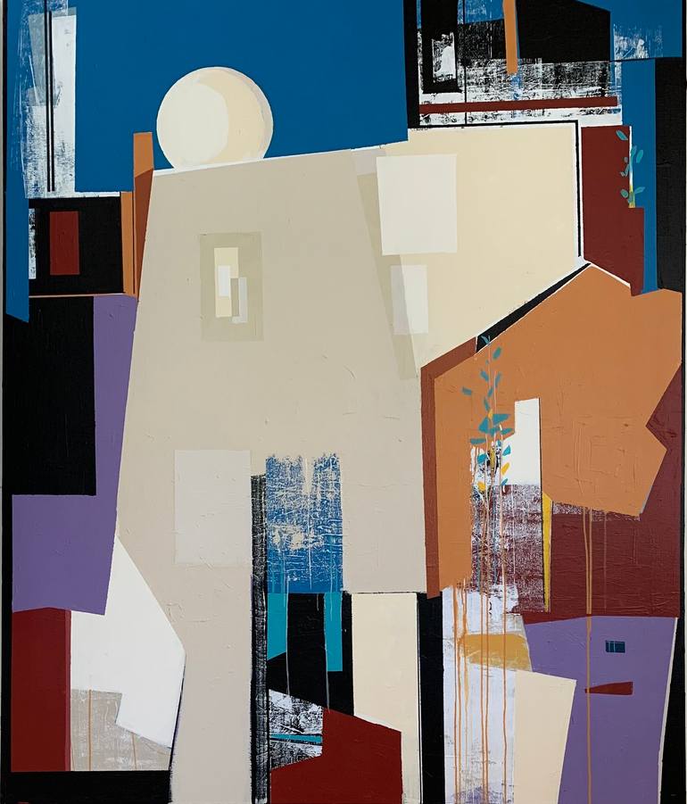 Original painting Luna Blanca,cold and warm colors ,rectangles and squares spaces,they give me freedom for the moon.