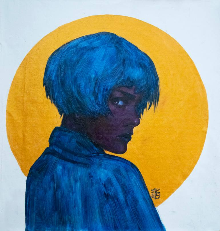 Original oil and acrylic painting on canvas with gold acrylic paint